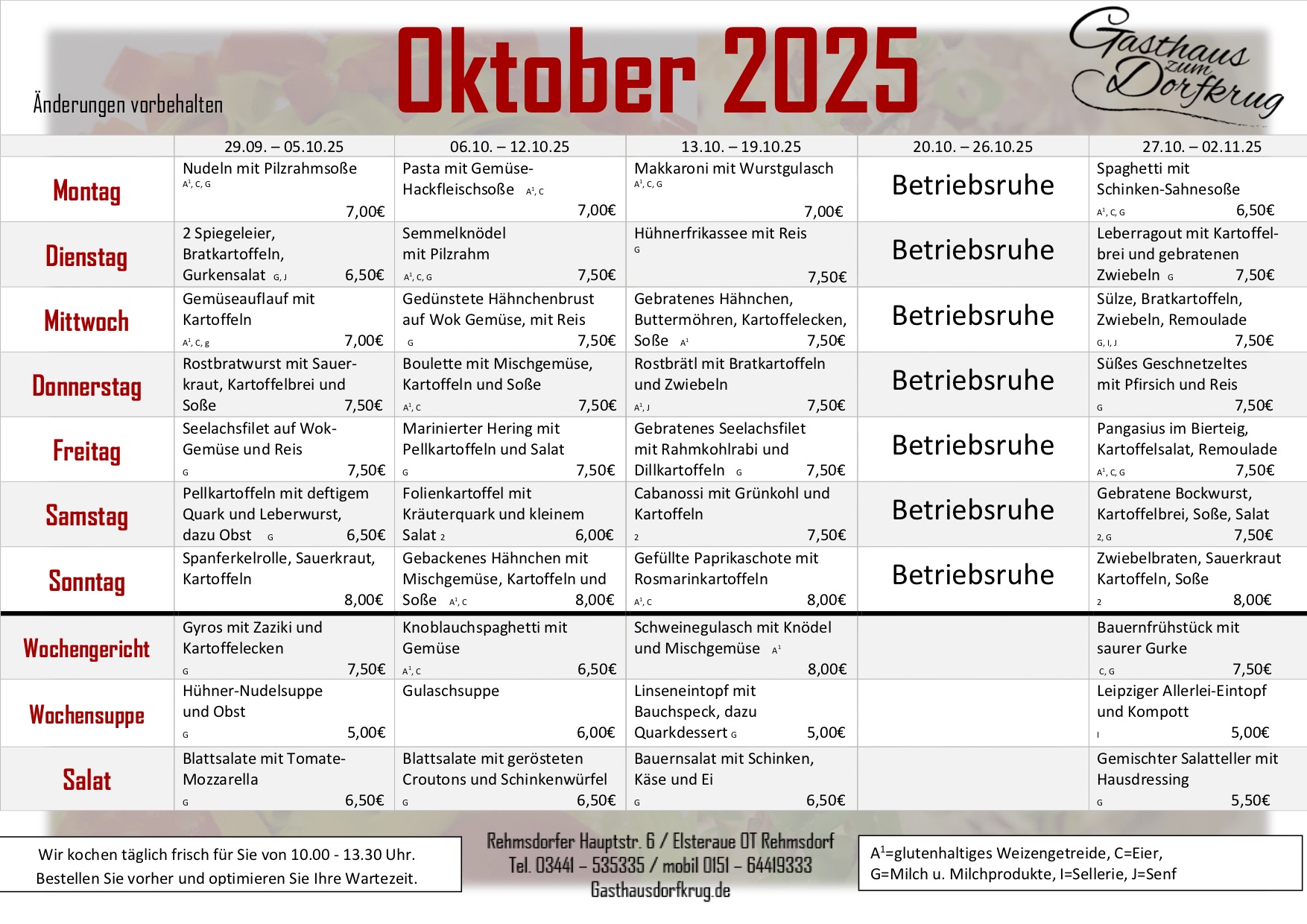Vom 20.10.2025 bis einschließlich 26.10.2025 bleibt unser Restaurant aufgrund von Betriebsruhe geschlossen.